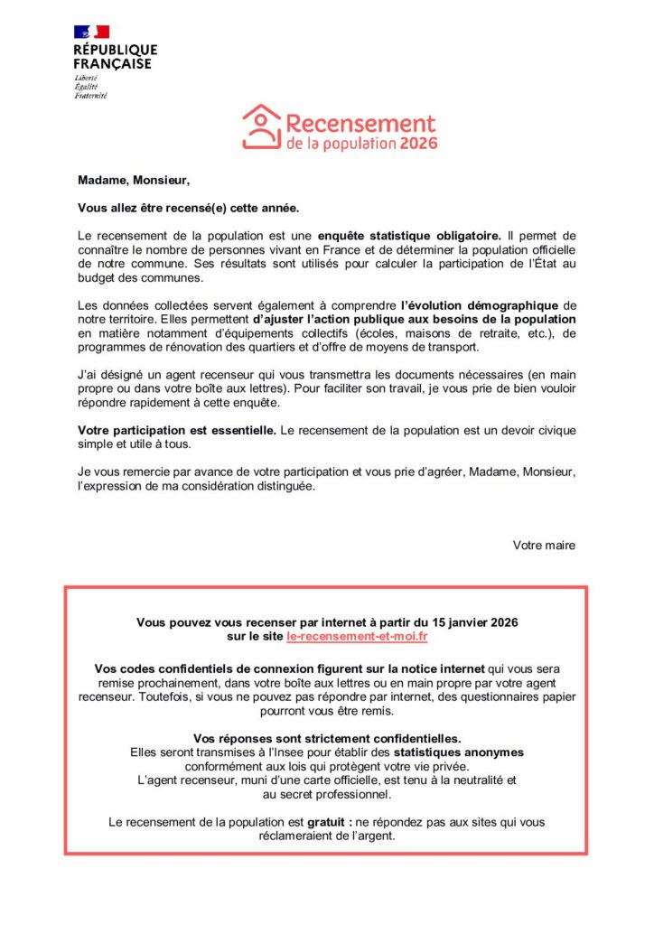 RECENSEMENT DE LA POPULATION DE SAINTE MESME DU 15 JANVIER 2026 AU 14 FEVRIER 2026